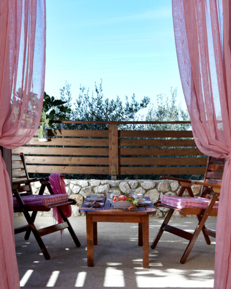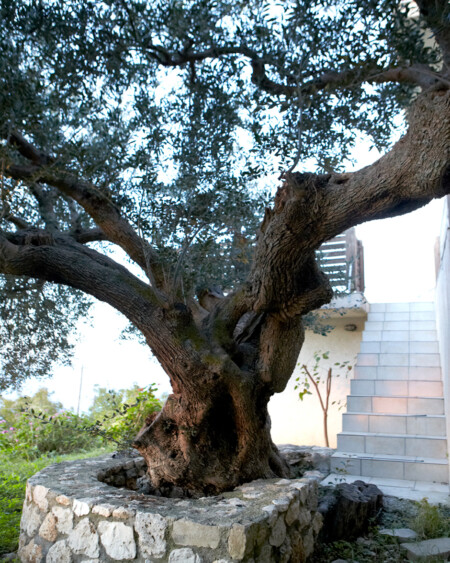 In the garden stands the age-log olive tree. Around it, a bench built of stone invites you to sit back and enjoy the thick shade of the tree.